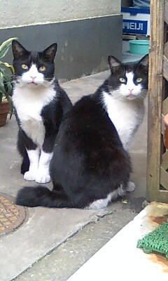 我がマンションにいるニャン太郎、ニャン吉です。かわいい奴らです。鰹節やシーチキンをあげるときだけ寄ってくる現金な奴らです。