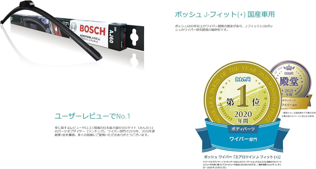 NCの時はレクサス用スポーツワイパーなどを装着していましたが、こちらのボッシュの場合若干値段はしますが、本体ごと交換するだけなので、いちいちゴムをつけたり外したりしなくても良いのが楽ですね。