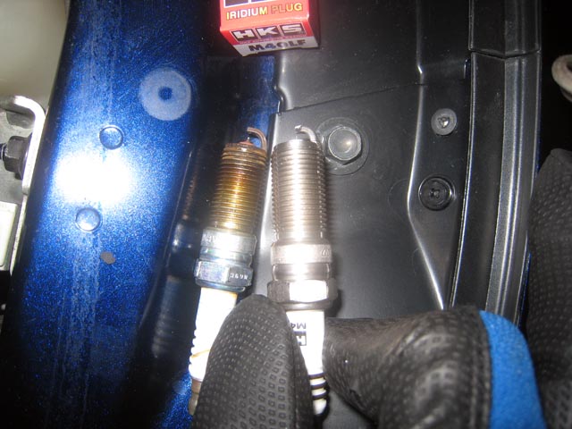 ちょうど20000km走行したので、まぁ交換にもいい時期だし、HKSレーシングサクションの取説にも、プラグの番手をあげた方がよいと書いていたので。