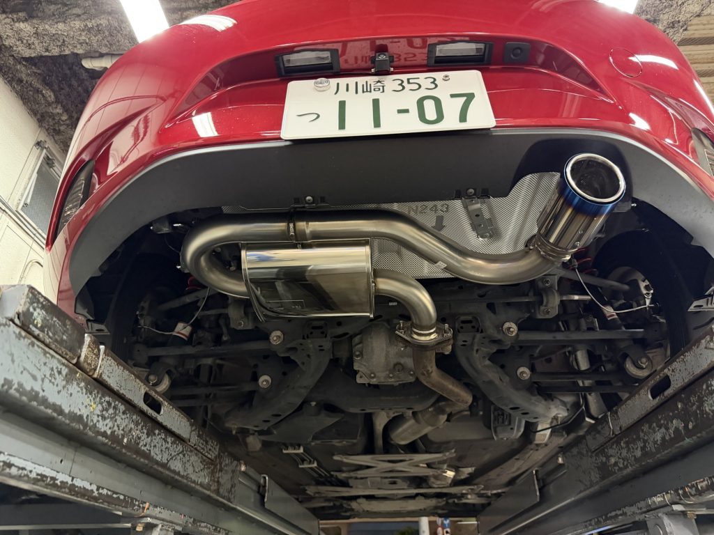 マフラー交換は、前のロードスターでは自分で何回も交換していましたが、もうさすがに年齢的にも体重的にもしんどいと言うこともあり(笑)今回は全てお願いした形です。