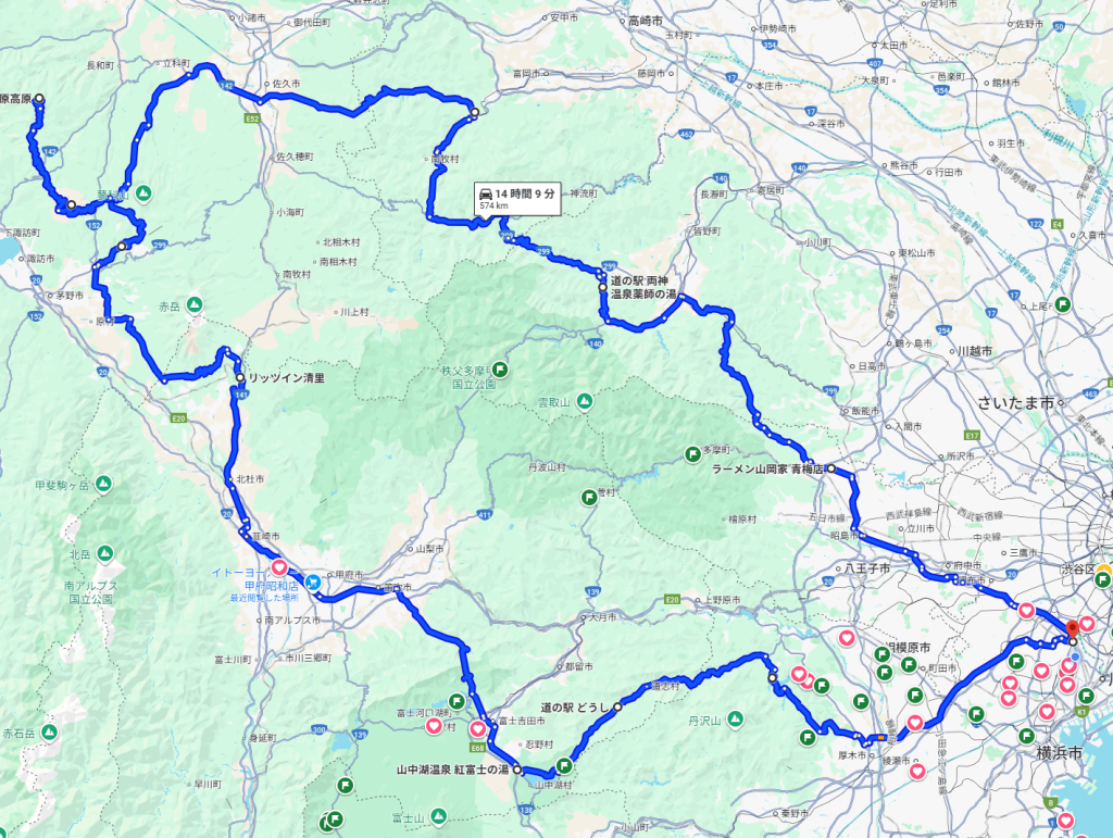 全部下道。なかなかの地獄……いや、楽しみ。途中で温泉を挟みつつ、のんびり行くことにしました。
