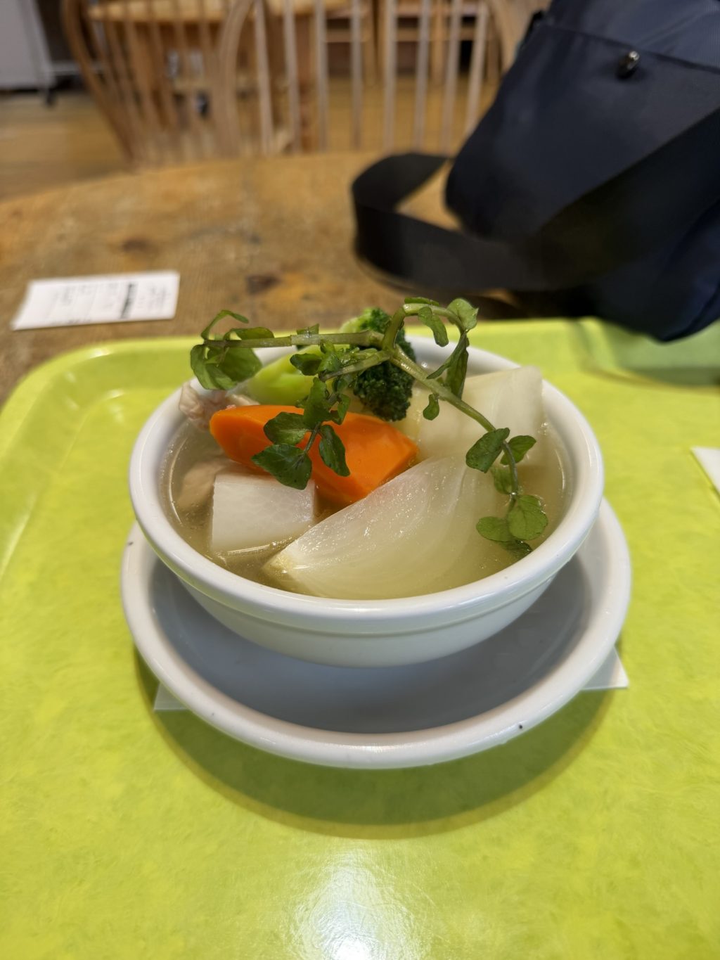 時々タイヤが滑りそうになりながらも、楽しく走り抜け、道志の道の駅で朝食にポトフをいただきました。