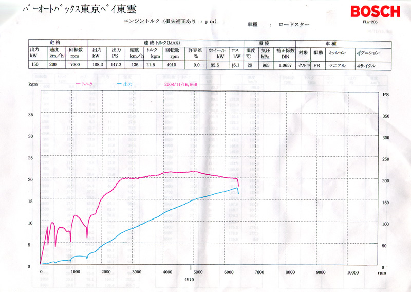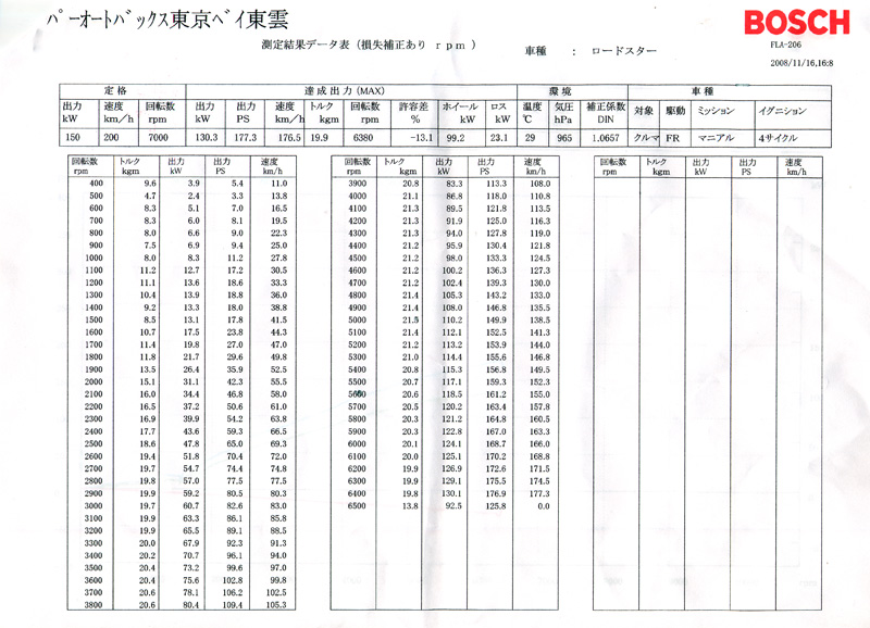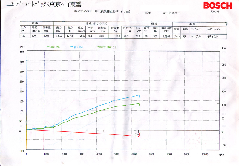 でも、あがりかたがキレイです。この曲線が維持できたとしたらレブに当たるくらいで180ps行けそう?