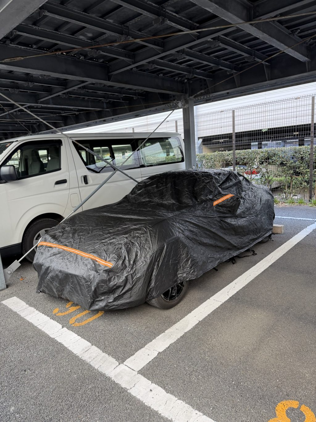 ただ、車検証など大事なものが濡れてしまったため、ハーフカバーではやはり心許ない。ということで、思い切ってフルカバーにしました。昔乗っていたロードスターのときも、マンションに住みついている野良猫に車の上に乗られるので、カバーを使っていましたが、毎回外したり掛けたりするのが面倒なんですよね。まぁ仕方ないですが。