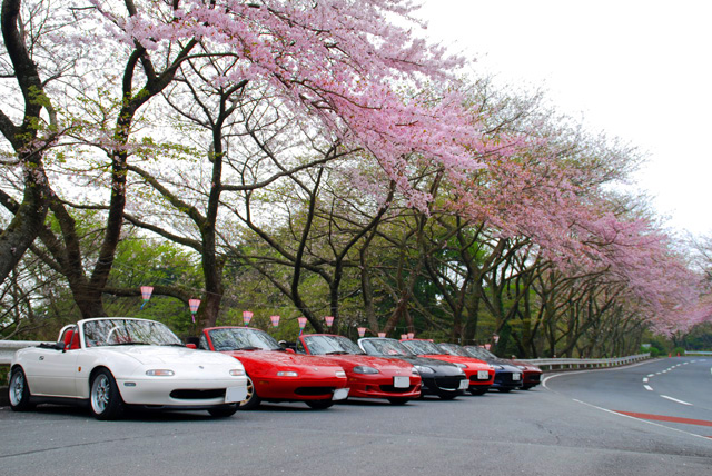 桜の花びらをまといながら疾走するロードスター。うーん、絵的にやばいくらいステキ(笑