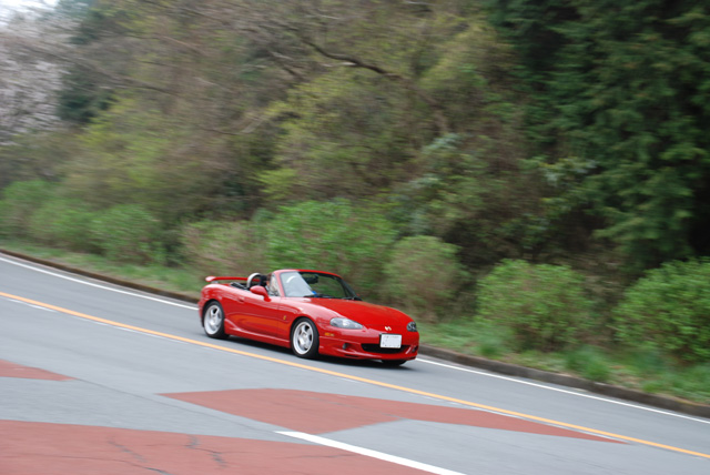 今回の目的はおかっぴさんの呼びかけで、箱根ターンパイクの「桜のトンネル」を駆け抜けるロードスター(というか俺たち)をデジタル一眼で超カッコよくフォトジェニックに連写する!という。そんなわけでニコンな私の出番となったわけであります。