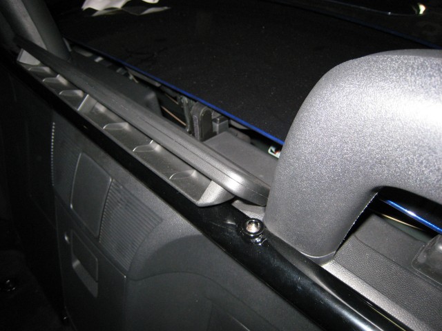 おそらく取扱説明書を見ればわかりますが、シートベルトのガイドユニットの上にブレースバーを取り付けます。