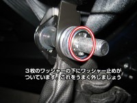 外すと、固定部品が一式取り外せます。ワッシャーは、ワッシャー止めで固定されているので落ちません。